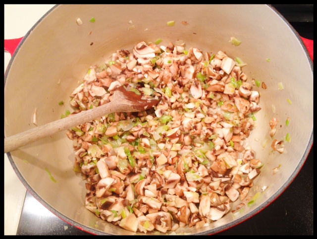 Leeks and chopped mushrooms