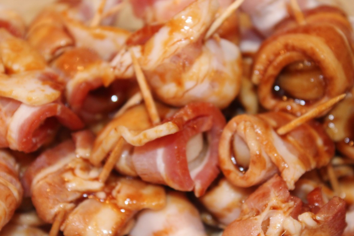 November 23, 2012 Wrap bacon over water chestnuts Wrap water chestnuts with bacon and marinate for 30 minutes