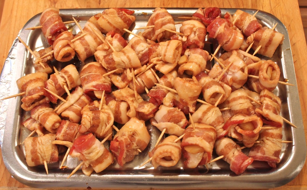 Water chestnuts on pan for baking